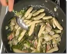 Ingredienti e procedimento della ricetta fusilli freschi con asparagi selvatici e triglie preparata da Mauro Improta alla Prova del Cuoco.
