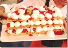 Cuocete a fiamma dolce, senza smettere di mescolare, lino a ottenere la densità desiderata. Lasciate bollire per almeno per un altro minuto, quindi trasferite la crema in una ciotola, coprite con pellicola e lasciate raffreddare. Montate a neve ferma la panna fredda con lo yogurt greco, lo zucchero a velo e qualche fragolina di bosco. Amalgamate la panna alla crema pasticcera con un movimento delicato del cucchiaio dal basso verso l’alto, fino ad ottenere una crema omogenea. Farcite la pasta sfoglia a strati con crema chantilly e fragoline di bosco. Pareggiate i bordi, cospargeteli con le briciole di sfoglia. ultimate con ciuffi di panna, decorate con meringhette e fragoline.