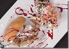 Ingredienti: - 180g di orata - 180g di filetti di branzino - 2cc di farina “00” - 30g di scalogno - 150g di patate novelle - 50g di cicoria catalogna - 4cc di olio evo - ½ bicchiere di vino bianco - 3cc di succo di limone - 2 tuorli d’uovo - aglio q.b. - pomodori secchi q.b. - prezzemolo q.b. - zeste di limone q.b. - sale q.b.